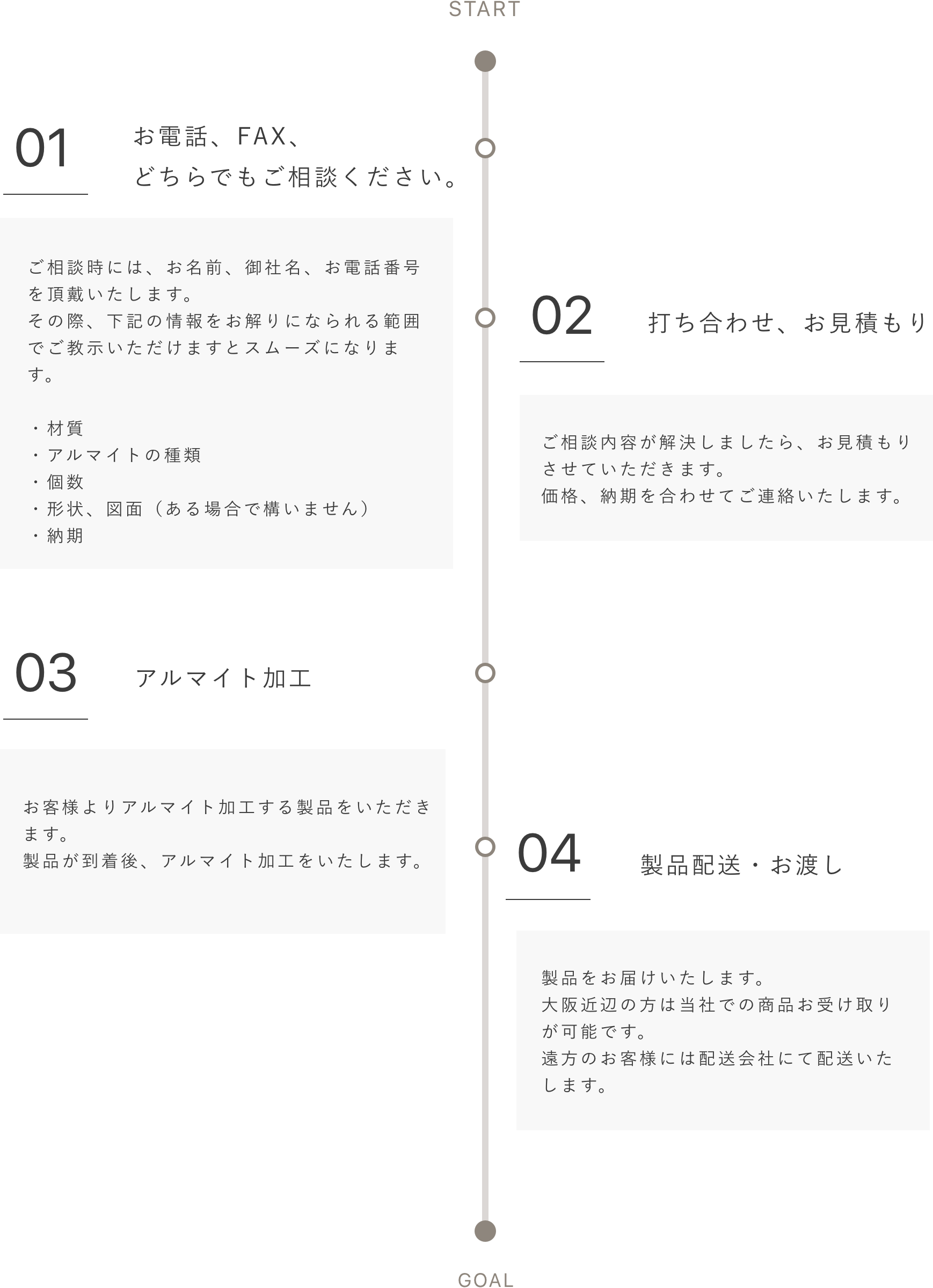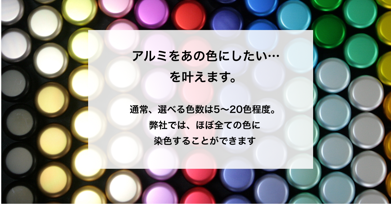 アルミの表面処理で何かお困りの時は、是非お気軽に声をかけて頂き当社の提案をご覧いただきたく思います。
