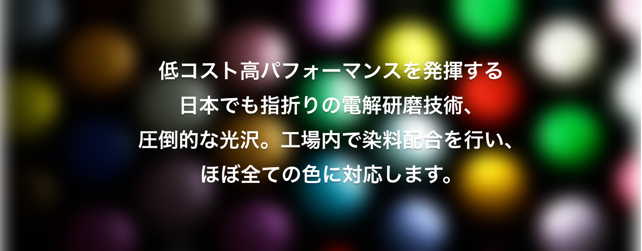 電解研磨、化学研磨、酸性エッチング(梨地)、アルカリエッチング、バフ研磨など、あらゆる選択肢に対応しています。